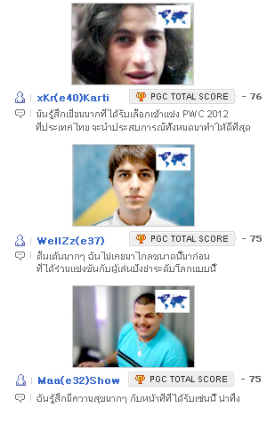 ร่วมทายผลการแข่งขัน Pangya World Championship 2 ลุ้นเป็นเจ้าของแรร์ไอเทม ผ่านระบบออนไลน์ได้แล้ววันนี้ พร้อมทั้งร่วมเป็นกำลังใจให้กับตัวแทนประเทศไทยให้สามารถคว้าแชมป์มาครองให้สำเร็จ งานนี้ใครจะได้เป็นเจ้าแรร์ไอเทม ร่วมลุ้นร่วมเชียร์ผลได้จากงาน Thailand Game Show 2012 ณ อาคารแสดงสินค้าไบเทคบางนา ในวันเสาร์ที่ 14 มกราคม 2555 นะจ๊ะ