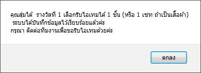 เลือกรับไอเทมได้ 1 ชิ้น (หรือ 1 เซ็ท ถ้าเป็นเสื้อผ้า)