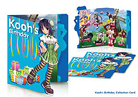 ด้านในประกอบไปด้วยบัตรคุกกี้ ลายพิเศษจำนวน 7 ใบ (49=3, 149=1, 299=1, 399=1, 555=1) รับประกันคุณภาพ และความสวยงาม สิทธิพิเศษสำหรับ Koohs Birthday Collection Set Limited Edition คือ การนำเอา Serial พิเศษในสมุด และเลขที่ของสมุดมาลงทะเบียนร่วมกันในเว็บไซต์ปังย่า เพื่อรับของแถม อย่าง ไม้แมว ทันที อย่างละ 1 ชุดเท่านั้น!! (1 เซ็ท ได้ 1 ชุด)
